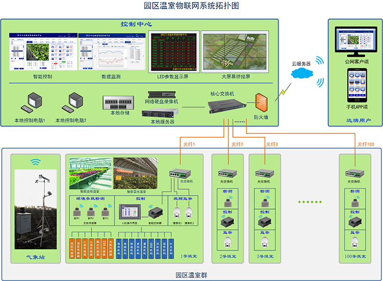 設(shè)施農(nóng)業(yè)智能控制系統(tǒng):通過(guò)農(nóng)業(yè)物聯(lián)網(wǎng)系統(tǒng),可以設(shè)定溫室內(nèi)各種設(shè)備運(yùn)行環(huán)境條件,當(dāng)環(huán)境信息未達(dá)到預(yù)先制定的條件時(shí),自動(dòng)啟動(dòng)溫室內(nèi)的相關(guān)設(shè)備,比如:風(fēng)機(jī)自動(dòng)調(diào)節(jié)通風(fēng)降溫、內(nèi)外遮陽(yáng)自動(dòng)調(diào)節(jié)光照強(qiáng)度、自動(dòng)噴滴灌、自動(dòng)加濕除濕、自動(dòng)施肥,實(shí)現(xiàn)智能化管理,節(jié)水,省電,省人工,更省心。
